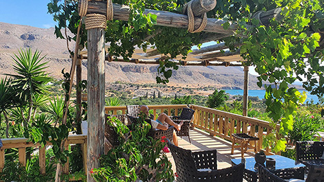 Unsere Empfehlung für eine ruhige Unterkunft im Westen von Kreta. Ideal um von hier aus Tagestouren in die Region zu unternehmen. Der atemberaubende Blick über die Bucht von Souda entschädigt die nicht unmittelbare Strandlage. Aber mit dem Motorrad sind sie in 10 Minuten bei den schönen Sandstränden von Kalives. Aber bis zur Stadt Chania, die schönste und interessanteste Stadt Kretas, sind es nur 15 Fahrminuten. Im Ort gibt es 3 urige Tavernen, zu Fuß erreichbar mit vortrefflicher Küche. Das Landhotel mit seinen gut ausgestatteten Studios und Appartements (alle mit seitl. Meerblick) ist architektonisch vorbildlich der Umgebung angepasst und wird liebevoll von der Familie geführt. Ein idealer Rahmen für ein gemütliches Zusammensein und gegenseitigem Austausch über das Erlebte.