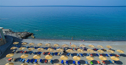 Das kleine Hotel Avra Palm liegt im Süden Kretas nahe des Küstenortes Koutsounari direkt an einer eigenen kleinen Badebucht. zum Strand gehen Sie nur durch den gepflegten Garten. Am Strand stehen den Gästen genügend Liegestühle und Sonnenschirme zur Verfügung, hier ist der Strand nie überfüllt. Fakultativ buchen wir für Sie die Tages-Kreuzfahrten zu den Naturschutzgebieten Chrissy und Koufonissi dazu.