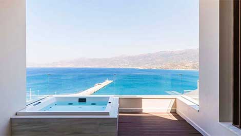 Kreta West-Küste kleines Boutique-Hotel mit modernen 28 Studio-Suiten in Top-Panoramalage. Nur ca. 100 m vom Sandstrand und dem authentischen Dorf Almirida entfernt. Zimmer auch mit privaten Pool, sharing Pool. Nur 30 Fahrminuten bis zur malerischen Altstadt Chania. Es ist eines der besten kleinen Boutique-Hotels Kretas. Adults Only Hotel, für Gäste ab 16 Jahre.