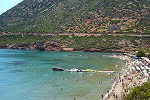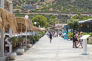 Auf der Rückfahrt bietet sich ein atemberaubender Blick auf die Berge der Halbinsel Apokoronas, die majestätisch über der Bucht thronen. Auf einem der Berggipfel erkennt man die antike Stadt Aptera, eine der bedeutendsten Stadtstaaten des westlichen Kretas in der Antike.